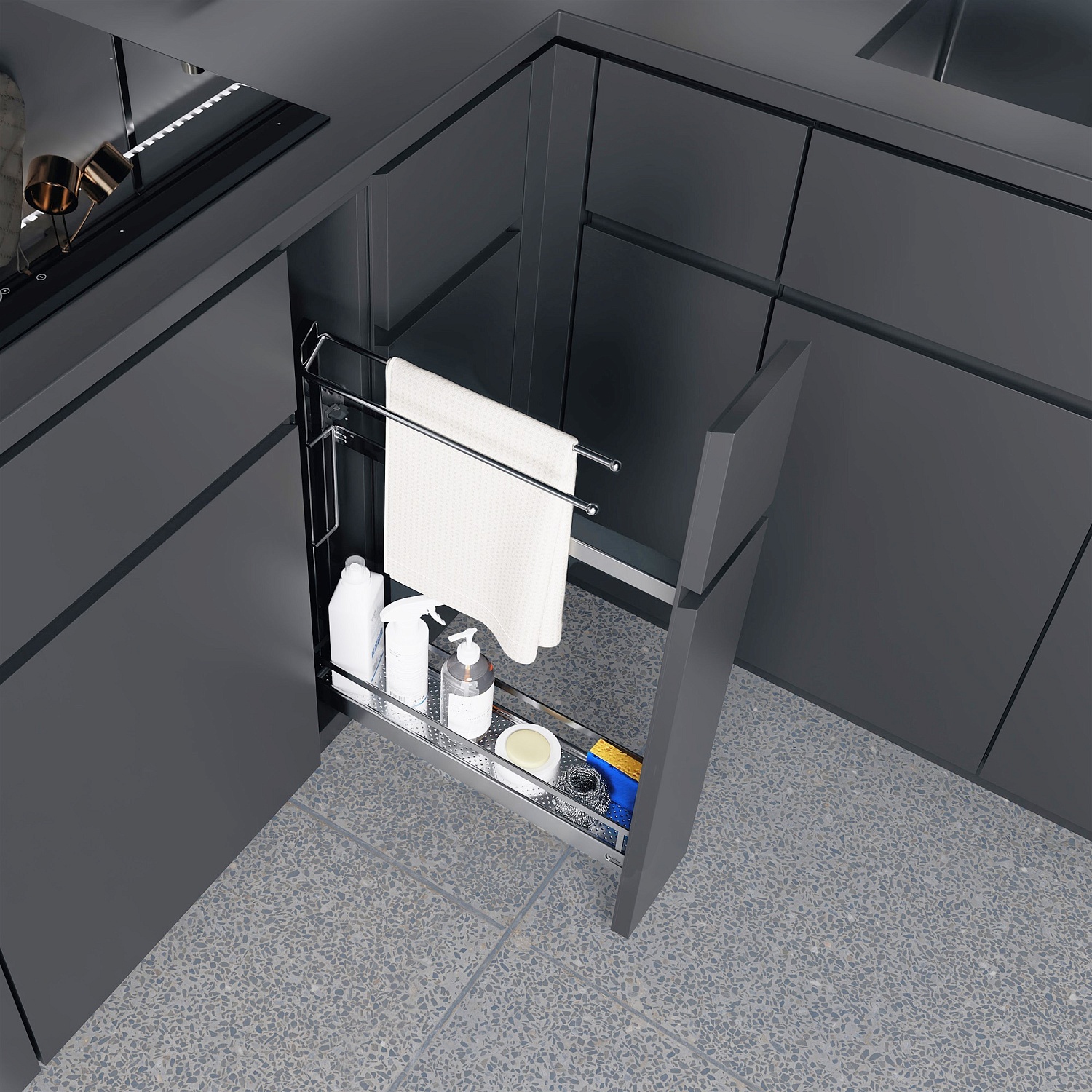 Бутылочница №15 для полотенец H 592 фасад 150 мм 3D