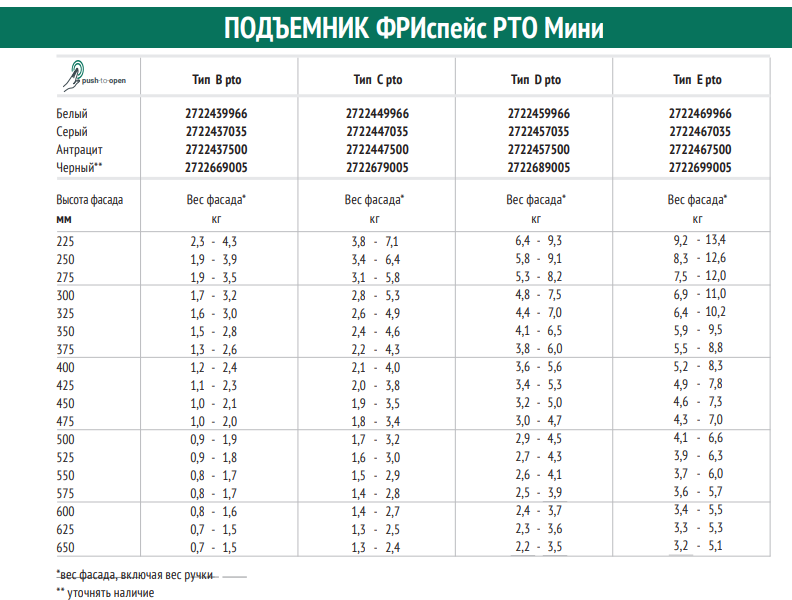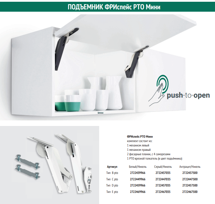 Инструкция по установке Подъемник ФриСпейс мини Push-To-Open 3,6 мб