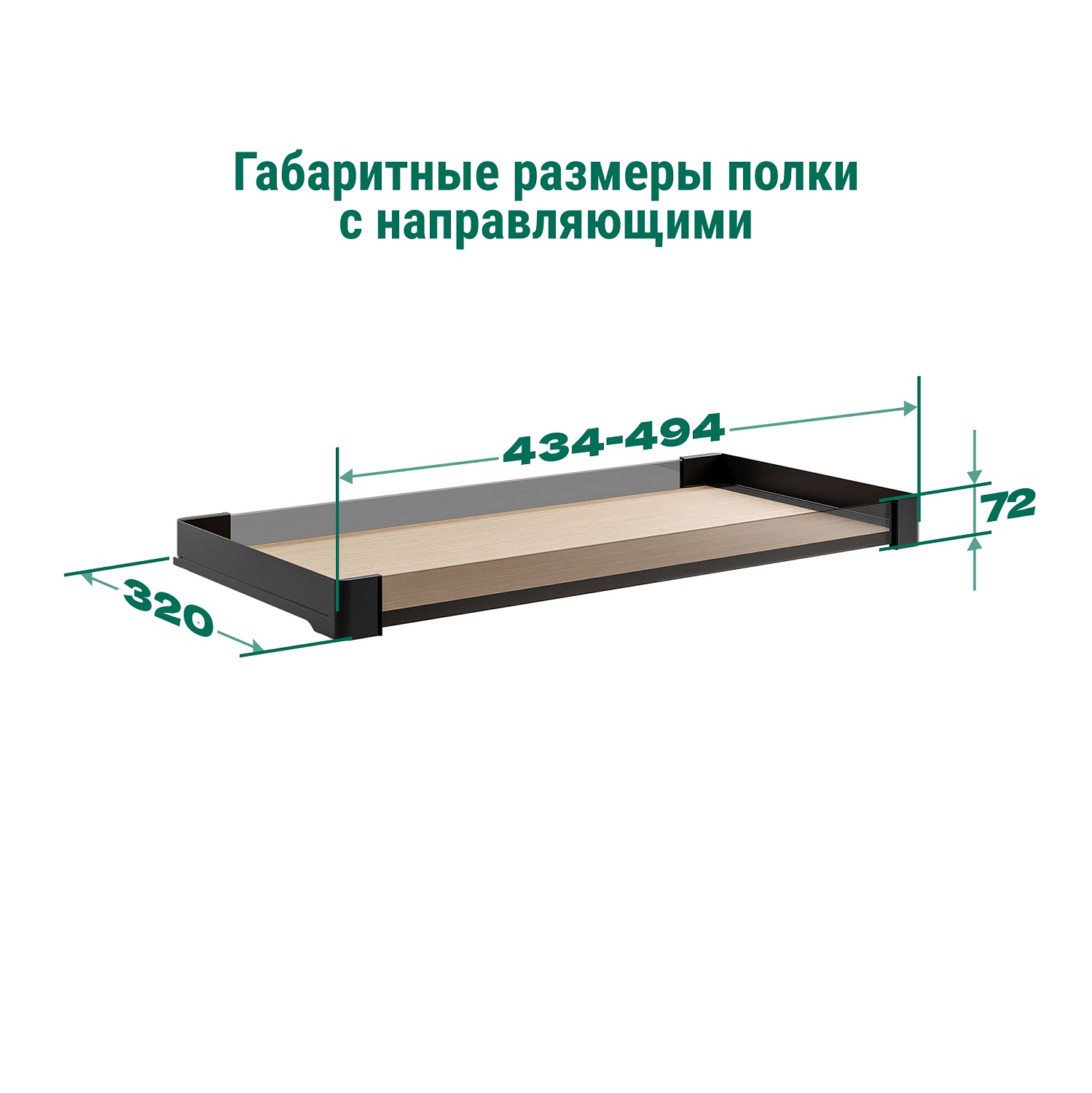 Полка внутренняя выдвижная 320 мм, Конеро, H 72, без дна, передней и задней стенок, 1 шт, цвет ЧЕРНЫЙ